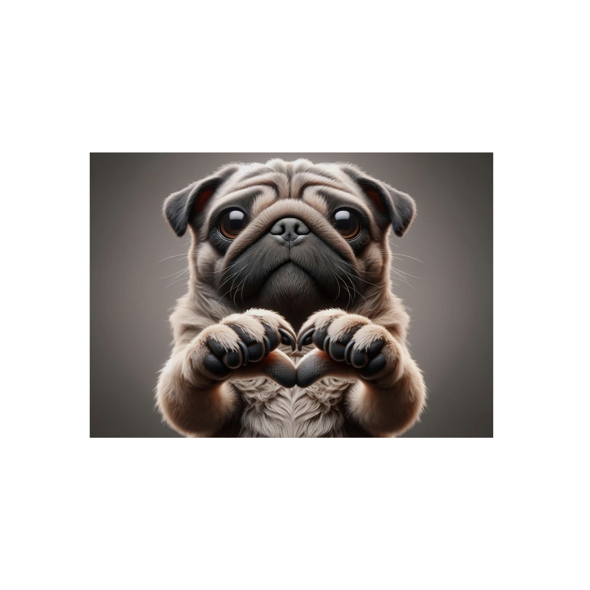 A playful pug forms a heart, sharing the joy of pet love.